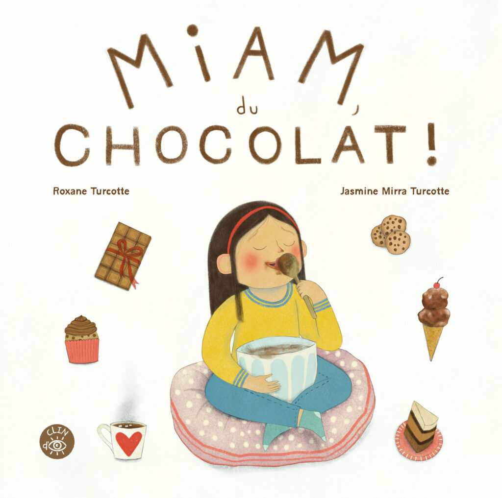Roxane Turcotte. Miam du chocolat! Illustrations de Jasmine Mirra Turcotte. Éditions Isatis, 2025, 24 p. (collection clin d’œil)
