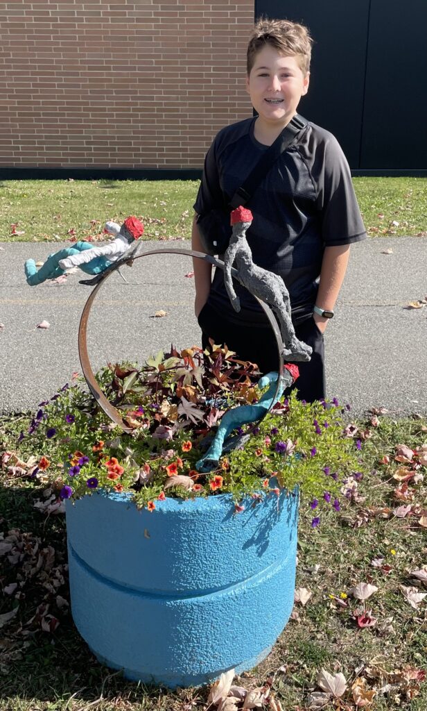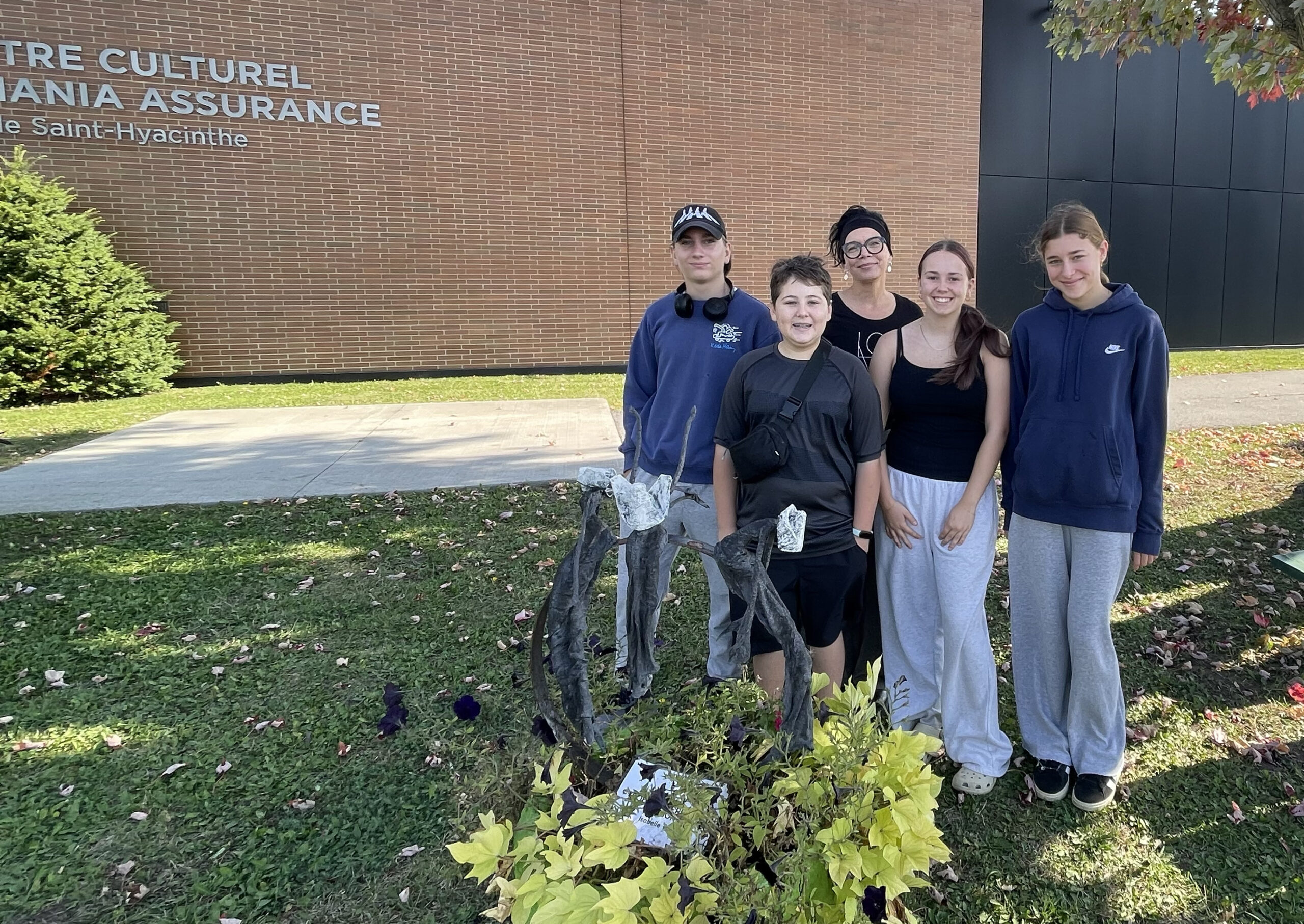 Le cours de sculptures urbaines a réuni six élèves. Leurs rencontres hebdomadaires, leur intérêt commun et la démarche qu’ils ont poursuivie ensemble les ont amenés à tisser des liens entre eux. Elliott Lamy et Maya Lampron se sont inscrits au cours parce qu’ils suivaient déjà un cours avec Isabelle Tellier, une prof le fun, disent-ils.