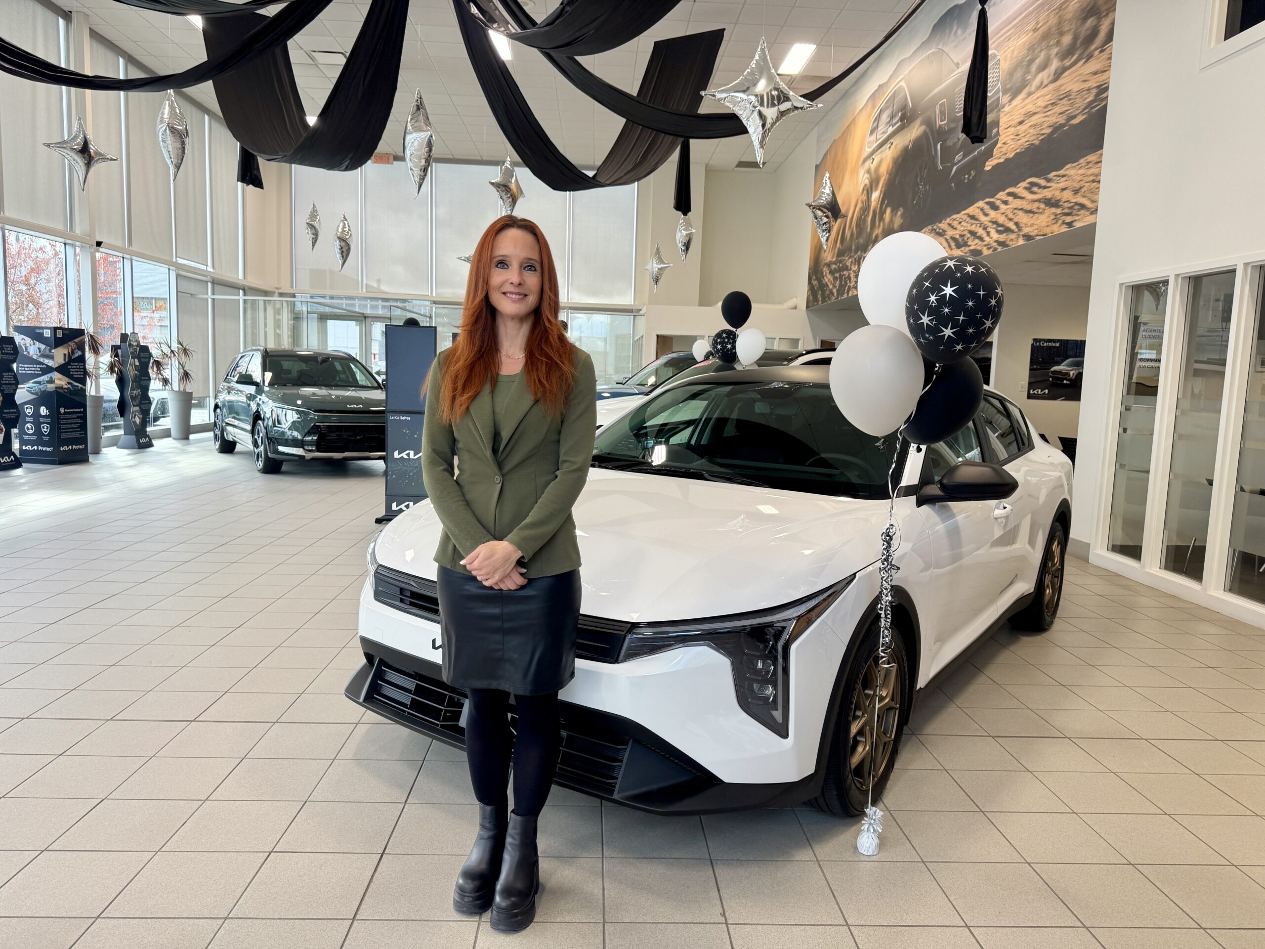 C’est un heureux hasard — et un petit coup de pouce de son conjoint, P.P. Deslandes, bien connu dans le milieu automobile — qui l’a menée vers cette nouvelle aventure. Christophe, directeur général de Kia St-Hyacinthe, a d’abord contacté son conjoint pour lui proposer un poste. « Au départ, je pensais peut-être à un rôle de direction commerciale, mais quand j’ai compris la nature du poste de livreuse de véhicules, j’ai eu un déclic. »