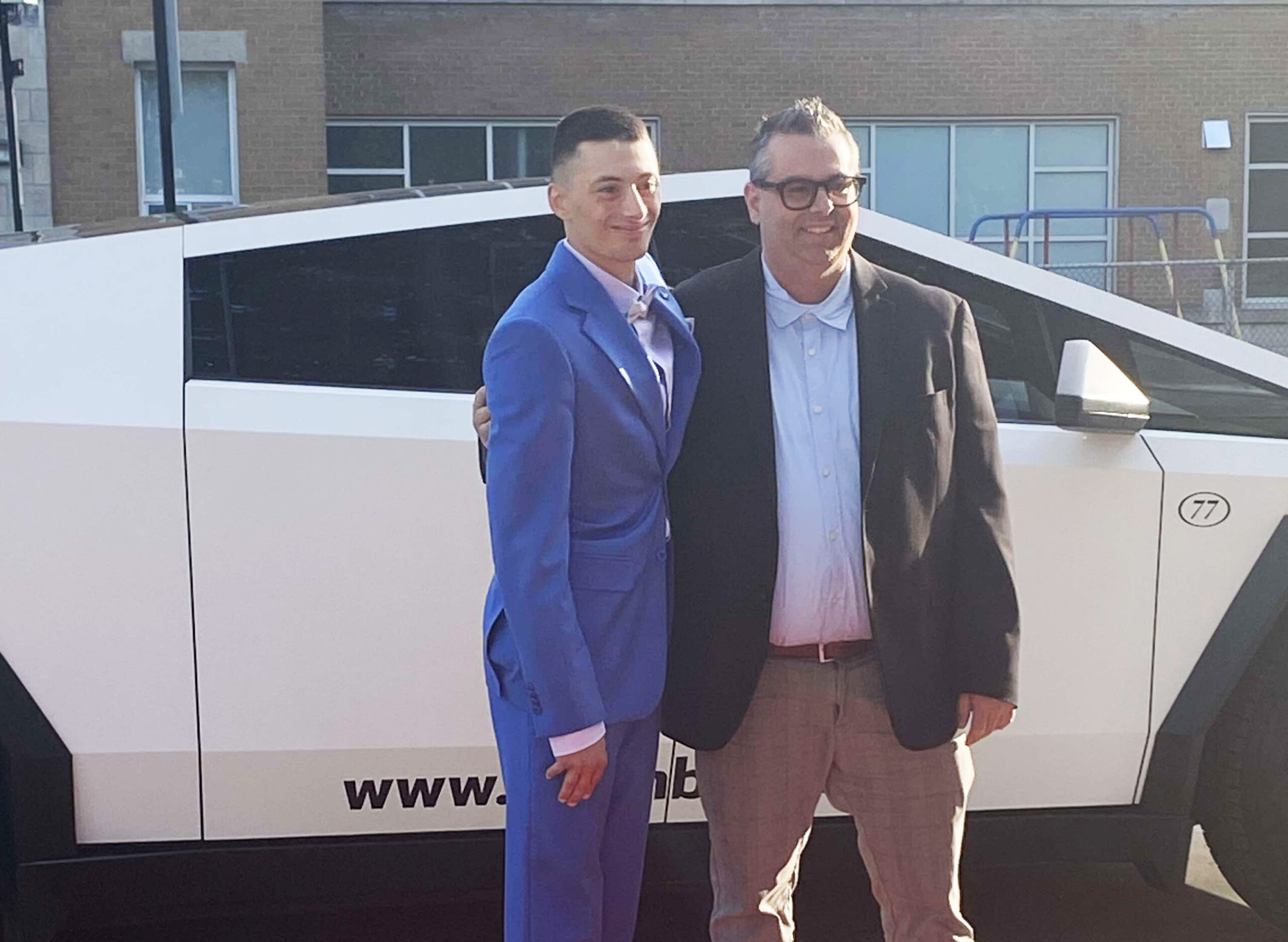 Chez Plombexel, entreprise maskoutaine spécialisée en plomberie et chauffage, l’année scolaire 2024-2025 s’est conclue sur une note particulièrement touchante. Après deux ans de stage, Jeffrey, élève de l’École René-Saint-Pierre, a terminé son parcours avec brio — et avec panache! Pour son bal des finissants au début juin, un rêve lui tenait à cœur : arriver au bras de son accompagnateur, Stéphane Nadeau, mission accomplie.